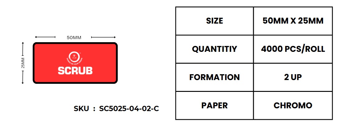 Scrub® 50x25mm Barcode Label,2UP Per Row Chromo,4000 Labels per roll,1inch core